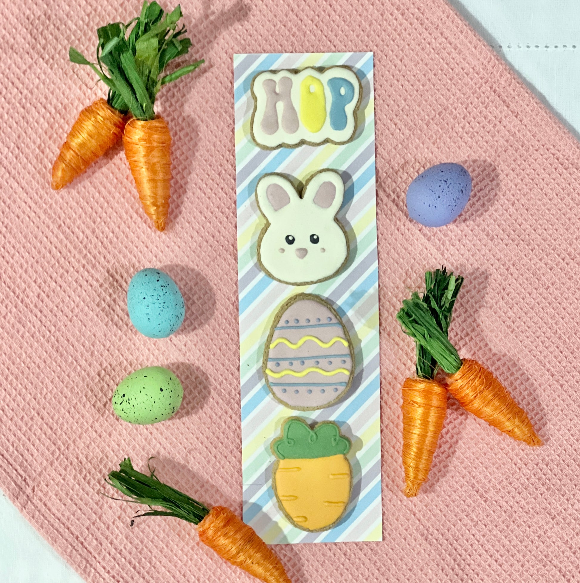 Includes a Bunny, Carrot, Egg, and a "Hop” shaped treats