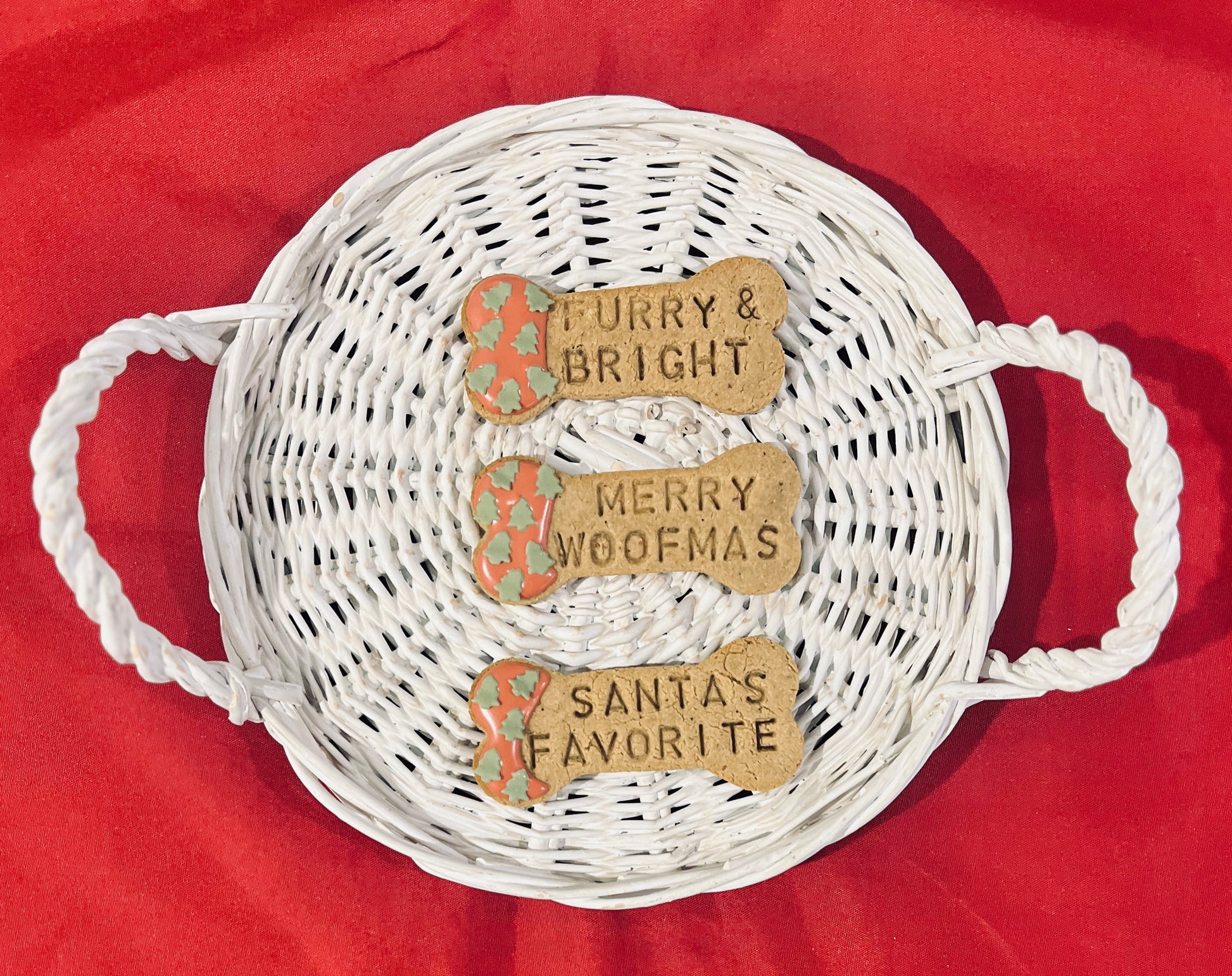 Included sayings on the bones: Furry & Bright, Santa’s Favorite, and Merry Woofmas